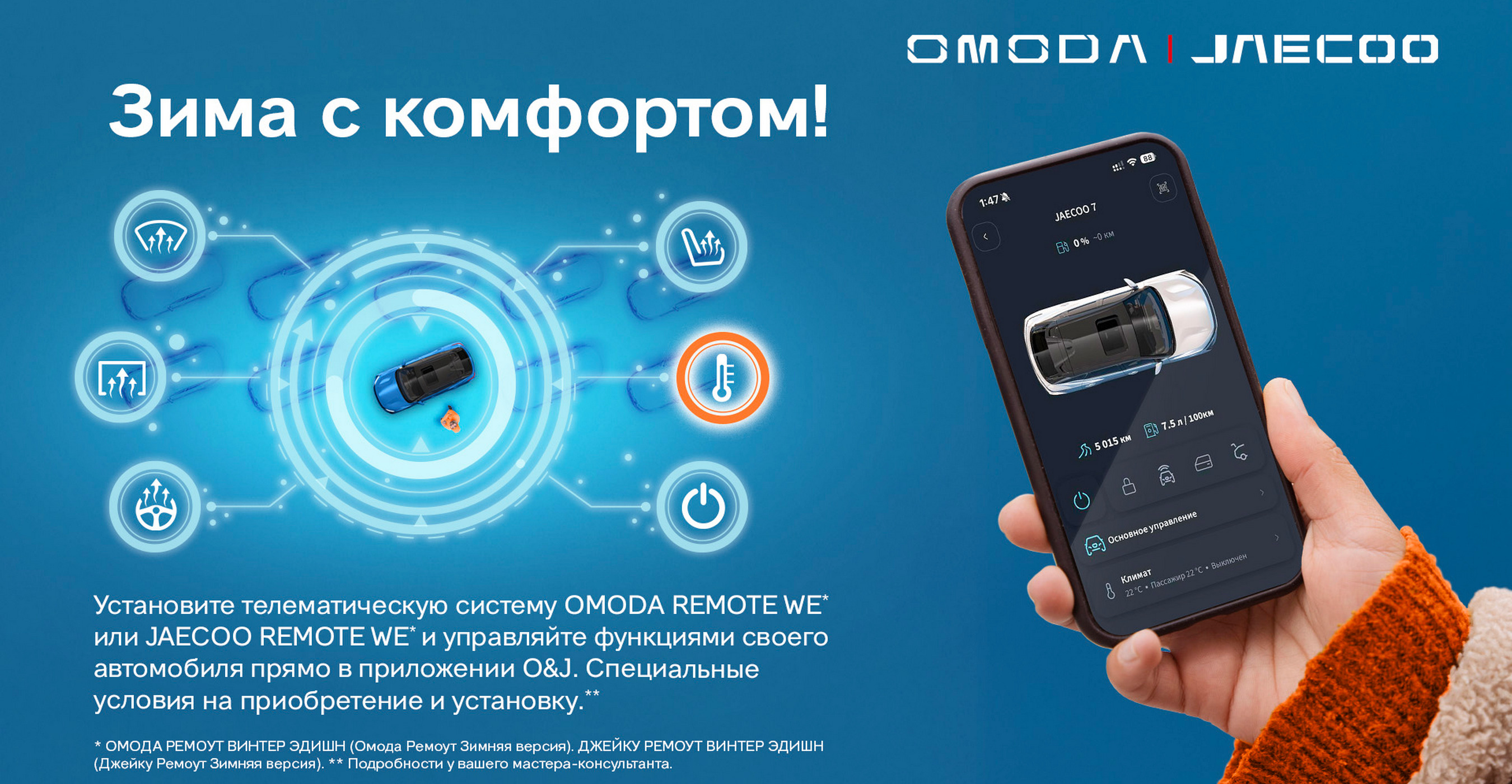 Скачивайте мобильное приложение и получайте доступ к сервисам OMODA и JAECOO в любой момент.